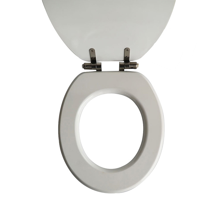 Ang makinis na ibabaw ng takip ng banyo ay kahanga-hangang kalinisan at madaling linisin, na angkop para sa mga karaniwang komersyal na produkto ng paglilinis at nag-aalok ng pinakamataas na kalinisan. Tinitiyak din ng mataas na kalidad, malakas na MDF at matibay na bisagra ng metal ang tibay at mahusay na katatagan.